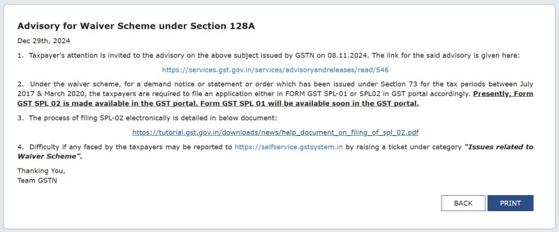 The Goods and Services Tax Network (GSTN) has issued an important update regarding the Waiver Scheme under Section 128A.