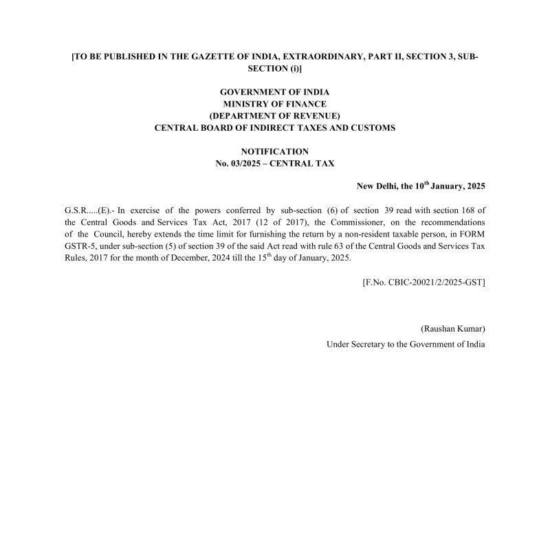 The Goods and Services Tax Network (GSTN) has announced extension of due dates for certain GST returns for the tax period December 2024.