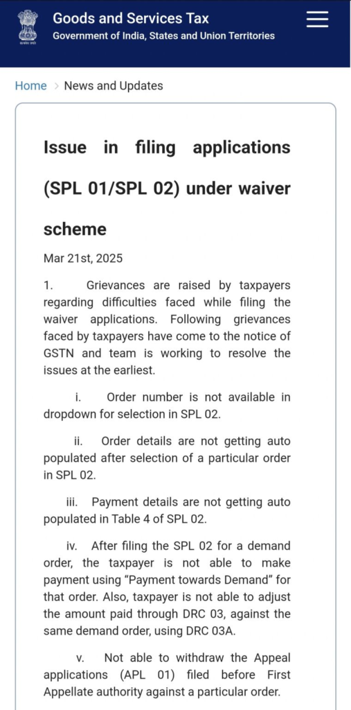 2️⃣ Taxpayers facing portal-related issues while filing the SPL form need not panic.
