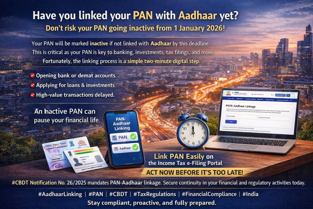 The upcoming PAN–Aadhaar linking deadline of 1 January 2026 is an important compliance requirement for taxpayers across India.